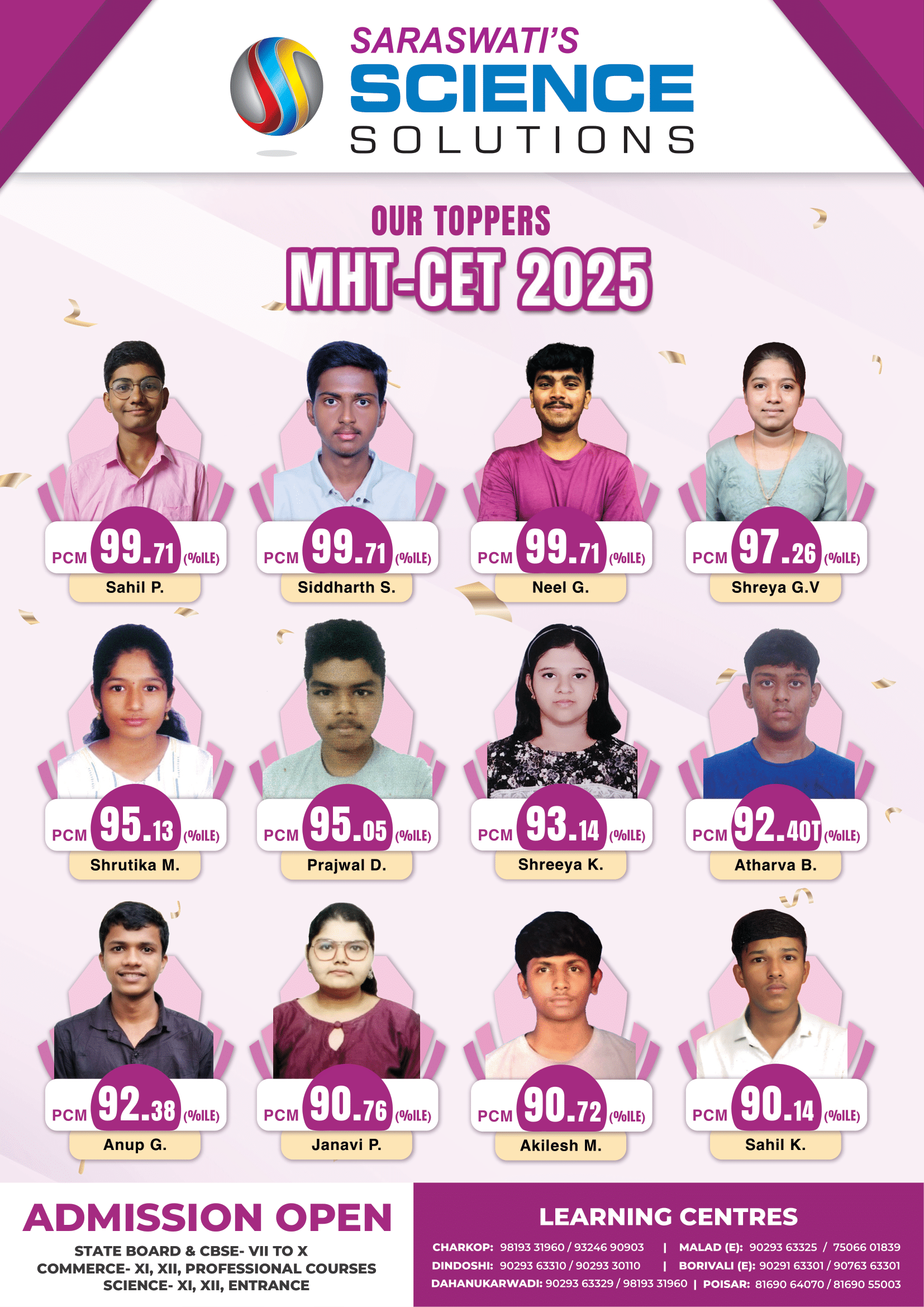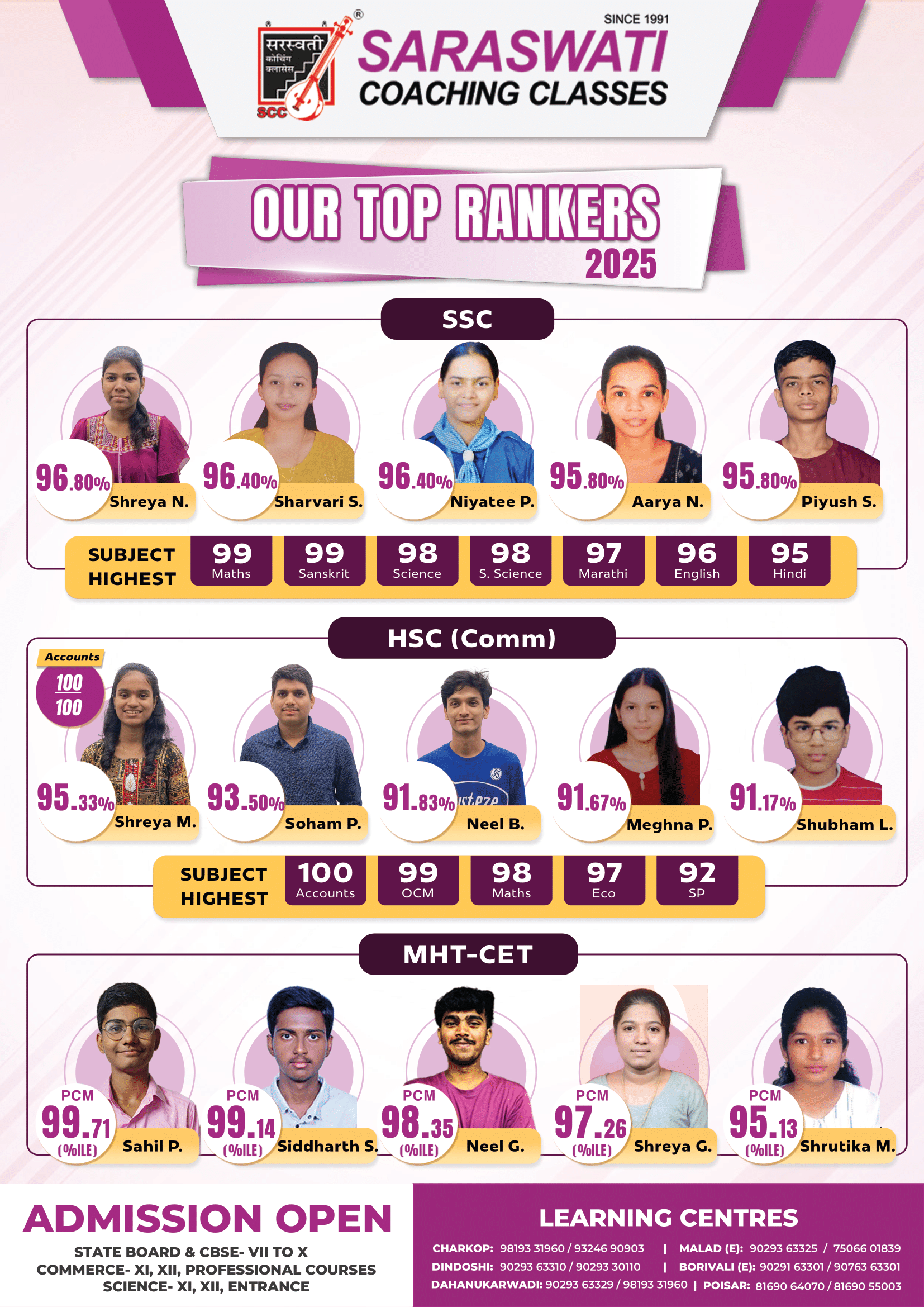 The bright performances of Saraswati Coaching Classes’ students year after year have been the